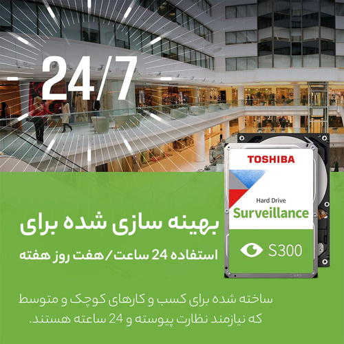 هارددیسک اینترنال »surveillance s300»از تولیدات شرکت «توشیبا» (toshiba) است. این مدل در خانوادهی سورولینس (s300) سازنده جای میگیرد و برای استفاده از سیستمهای حفاظتی ساخته شده است. در سیستمهای حفاظتی و DVRها به هارددیسکی با توانایی ذخیرهی پیوستهی دادهها نیاز است و باید بتواند هر روز، حجم زیادی از دادهها را ذخیره کند. در surveillance سازوکاری وجود دارد که امکان نوشتهشدن بیوقفهی اطلاعات را فراهم میکند. این مدل میتواند خروجی 64 دوربین نظارتی را به صورت همزمان روی خود ضبط کند که استفاده از آن را در سیستمهای مداربسته ایدئال میکند. ظرفیت هارددیسک 4 ترابایت و سرعت چرخش پلاترهای آن 5400 دور بر دقیقه است. 128 مگابایت حافظهی کش برای ذخیرهسازی در نظر گرفته شده است تا احتمال ازبینرفتن دادهها هنگام ذخیرهشدن به صفر برسد. به دلیل کیفیت ساخت خوب هارددیسک HDWT360UZSVA سازنده اعلام کرده است که میتوان سالانه تا 180 ترابایت داده را بدون هیچ مشکلی روی آن نوشت. HDWT360UZSVA در فرم فاکتور 3.5اینچی ساخته شده است و برای نصب، به چنین فضایی نیاز دارد. اینترفیس ذخیرهسازی، رابط آشنای SATA 3.0 است و میتواند در بهترین حالت خود، به سرعت انتقال 6 گیگابیت بر ثانیه برسد.